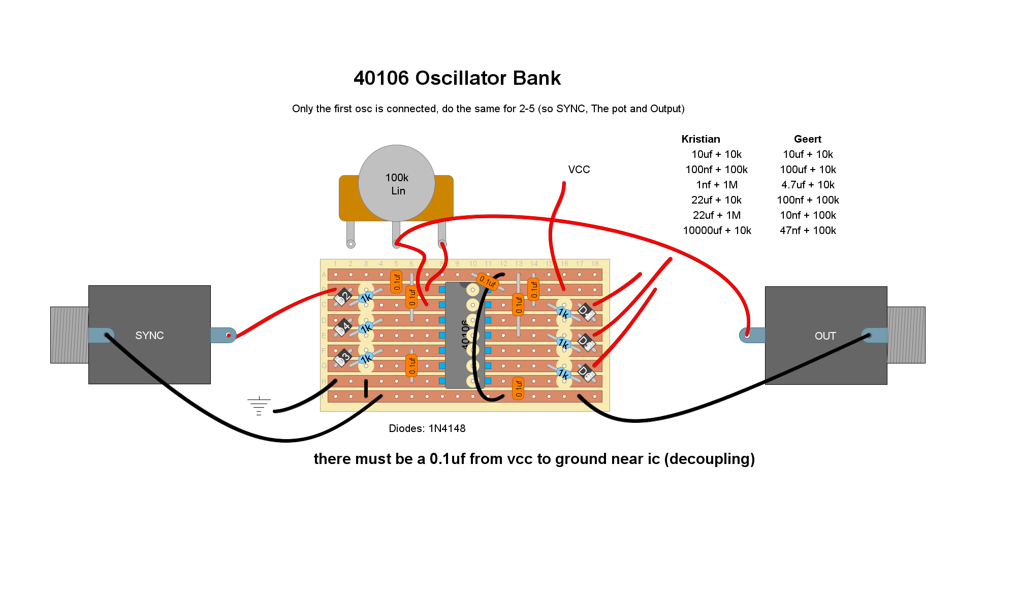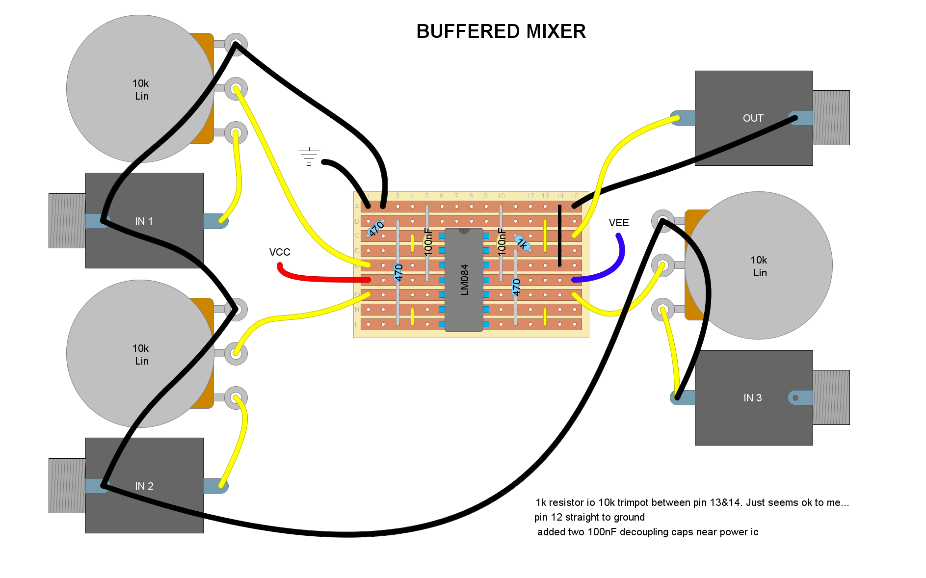 Here are the veroboard designs I made so far for this modular synth project which seem to work fine.
